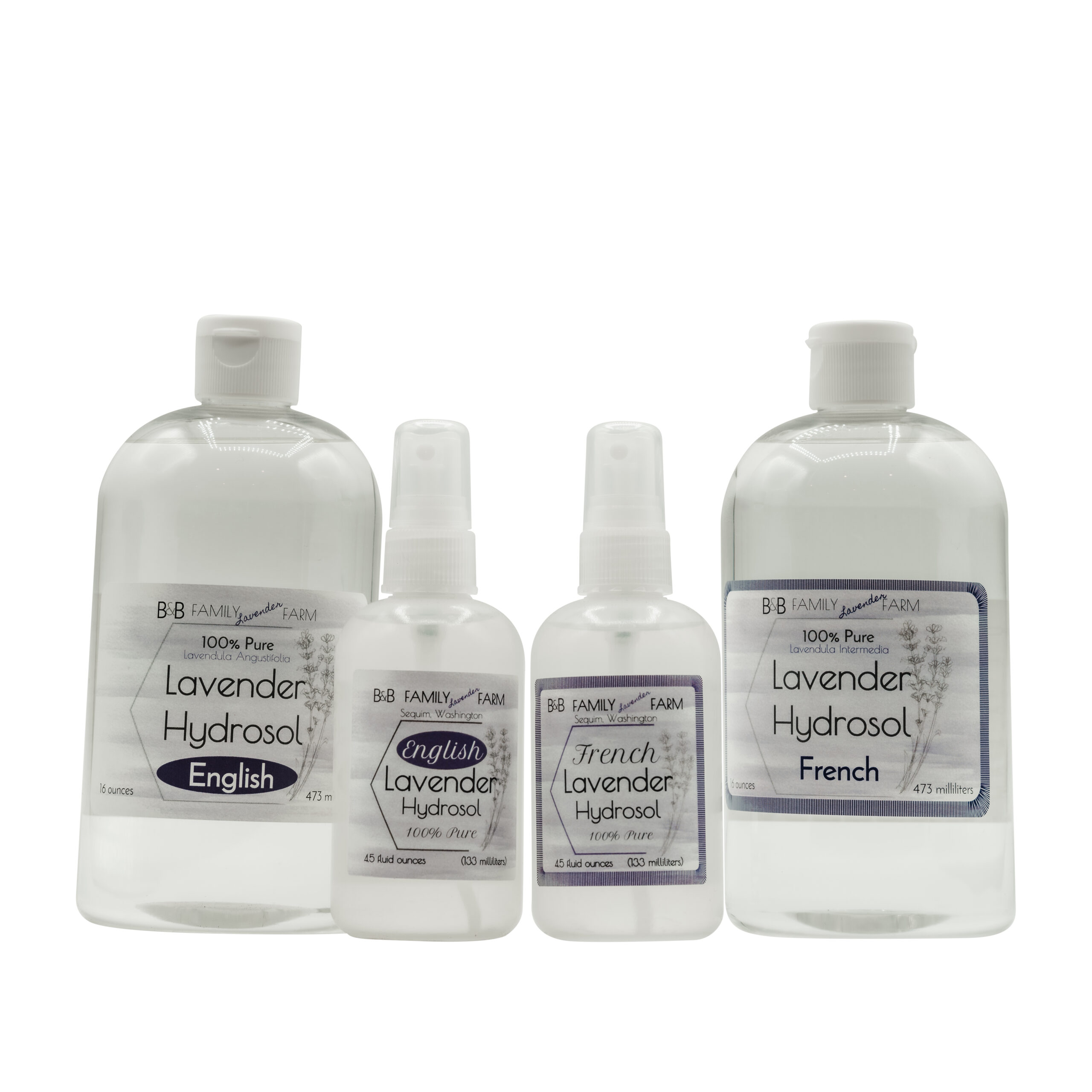 You can choose from two options. We combine all our varieties within the angustifolia (English) species or the intermedia (French) species together to create the two lavender hydrosols. They have slightly different smell profiles but will both carry antibacterial and antimicrobial properties.